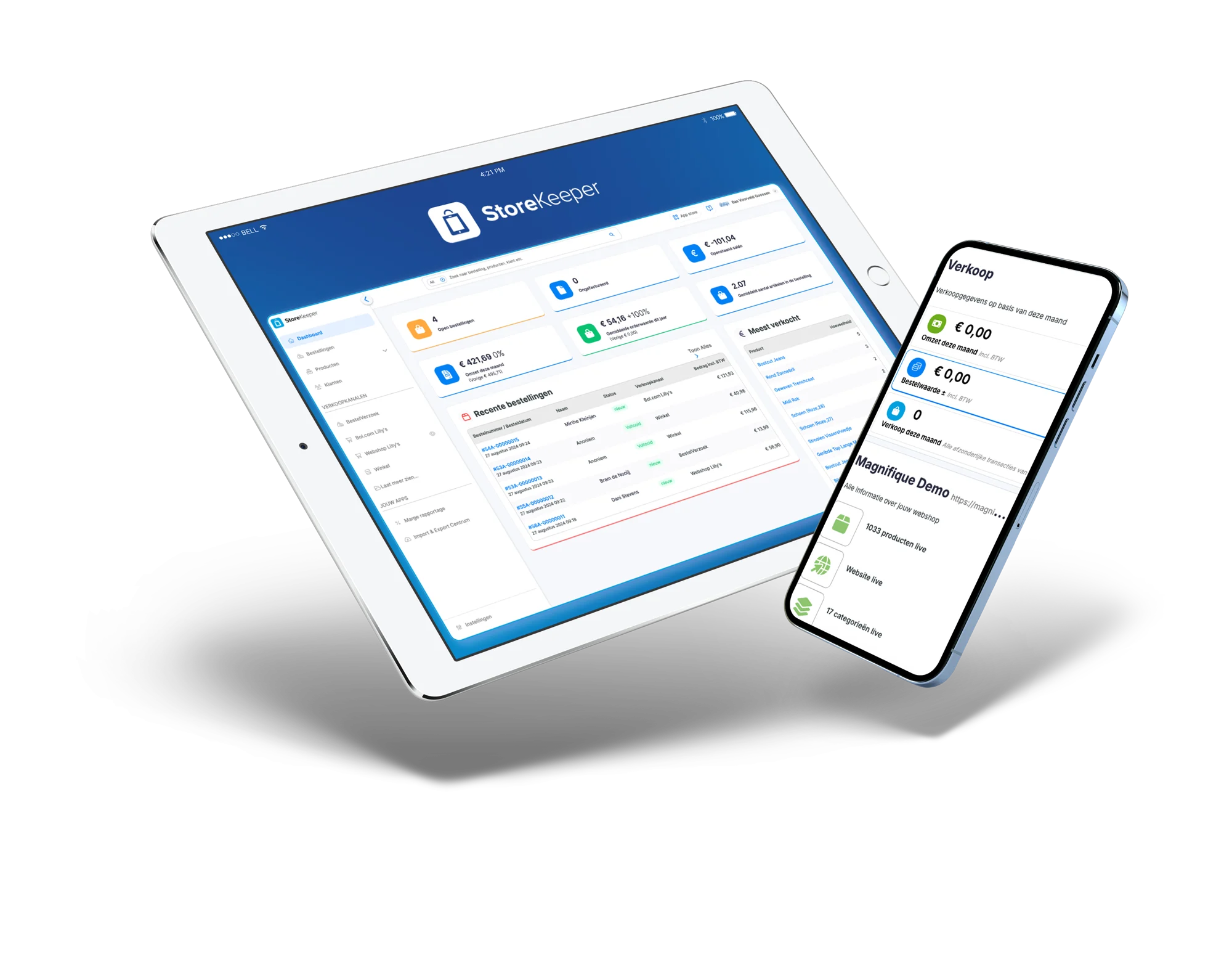 StoreKeeper bundelt alle verkoop- en boekhoudkundige data in één overzichtelijk systeem. Je krijgt inzicht in marges, omloopsnelheid, en strategische rapportages voor betere besluitvorming.